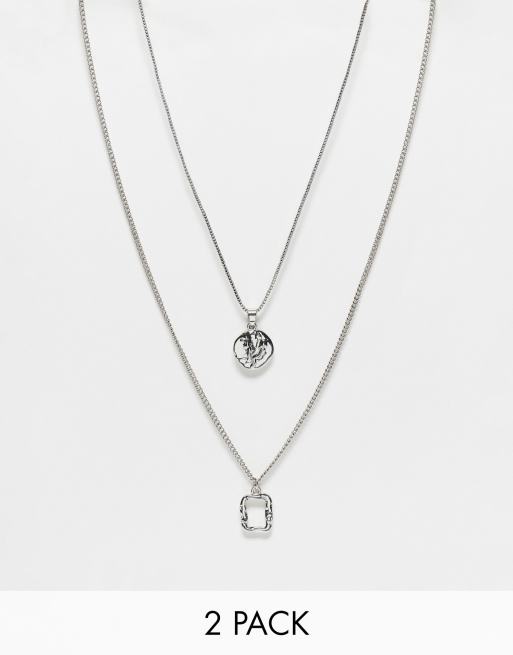 Pack de 2 collares plateados de cadena con colgantes de efecto fundido de ASOS DESIGN