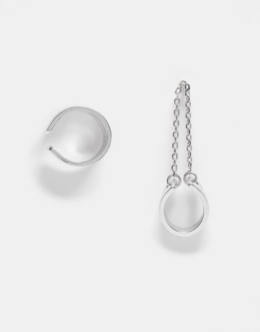 Pack de 2 ear cuffs plateados con diseño de dos hileras y detalle de cadena de ASOS DESIGN
