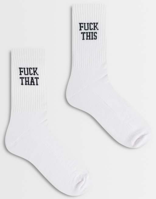 Pack de 2 pares de calcetines blancos con estampado gráfico de palabrotas de ASOS DESIGN