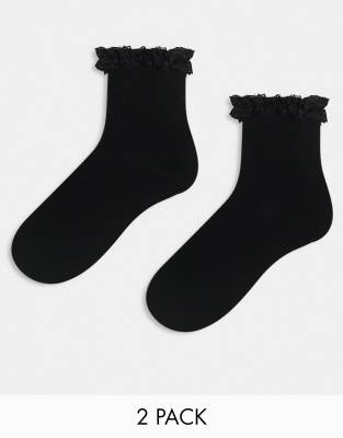 Pack de 2 pares de calcetines tobilleros negros con volantes de ASOS DESIGN