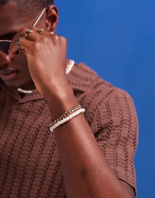 Pack de 2 pulseras doradas con diseño de cadena y de perlas sintéticas de 6 mm de ASOS DESIGN