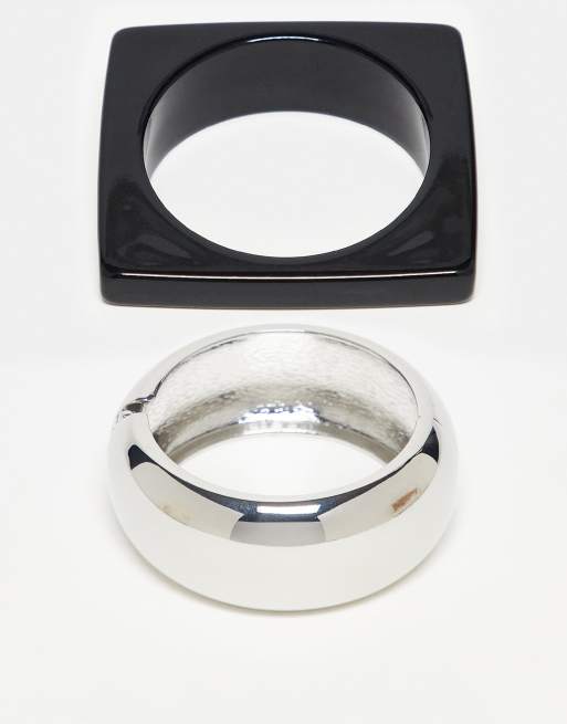 Pack de 2 pulseras rígidas monocromáticas con diseño cuadrado de ASOS DESIGN