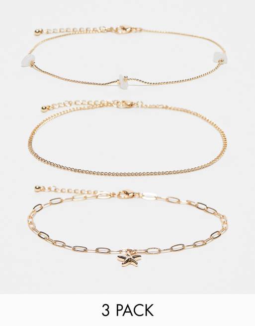 Pack de 2 tobilleras doradas con diseño de eslabones abiertos y detalle de estrella de mar de ASOS DESIGN