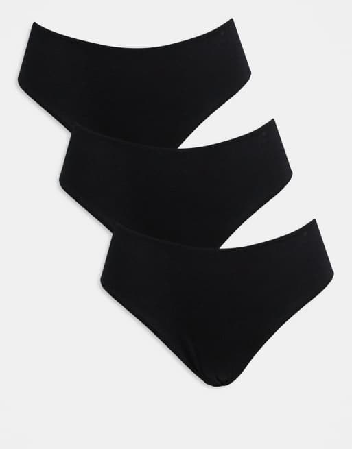 Pack de 3 braguitas brasileñas negras de cobertura media de algodón de ASOS DESIGN