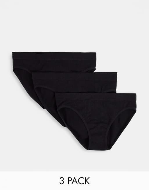 Pack de 3 braguitas negras sin costuras de canalé de ASOS DESIGN