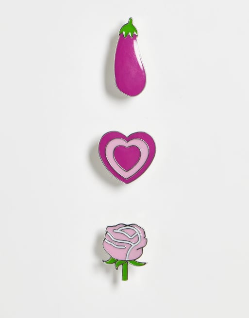 Pack de 3 chapas con diseño de corazón y rosa Love de ASOS DESIGN