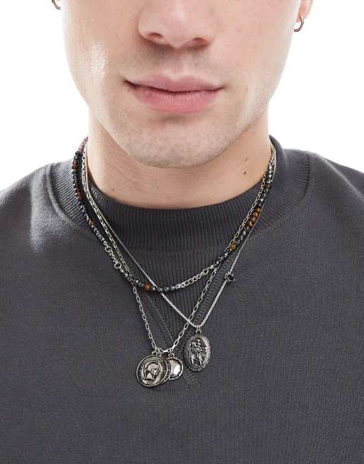 Pack de 3 collares plateados con colgantes de monadas y cuentas de ASOS DESIGN