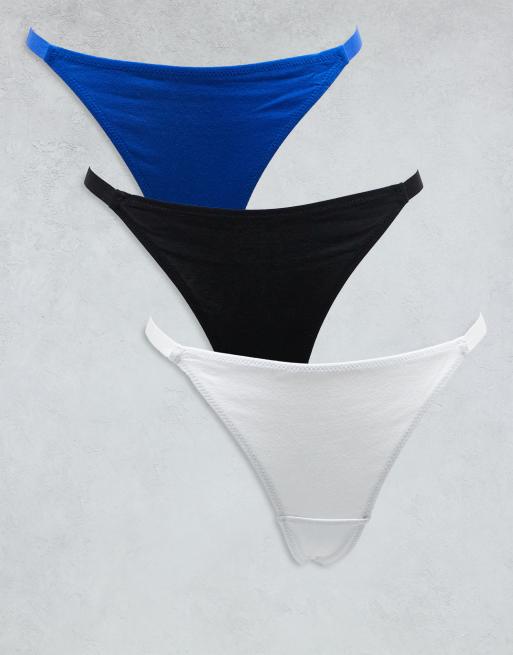 Pack de 3 tangas de color negro, blanco y azul cobalto de algodón de ASOS DESIGN
