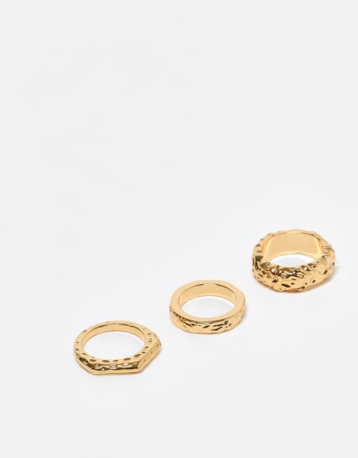 Pack de 3 anillos con diseños fundidos chapados en oro de 14 quilates de ASOS DESIGN