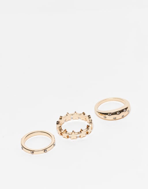 Pack de 3 anillos dorados con diseño cósmico de ASOS DESIGN
