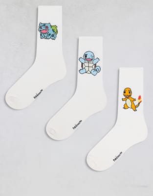 Pack de 3 pares de calcetines color crudo con estampado gráfico de Pokémon de ASOS DESIGN