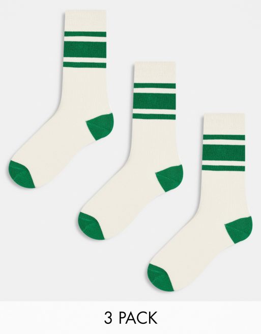 Pack de 3 pares de calcetines color crudo con rayas verdes de ASOS DESIGN