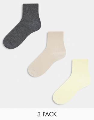 Pack de 3 pares de calcetines tobilleros en tonos pastel de canalé de ASOS DESIGN