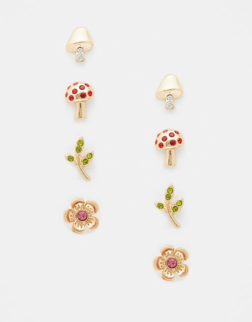 Pack de 4 pares de pendientes de botón dorados con diseño de cristales de ASOS DESIGN