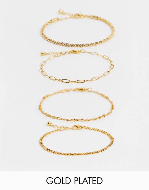 Pack de 4 pulseras finas chapadas en oro de 14 quilates de ASOS DESIGN