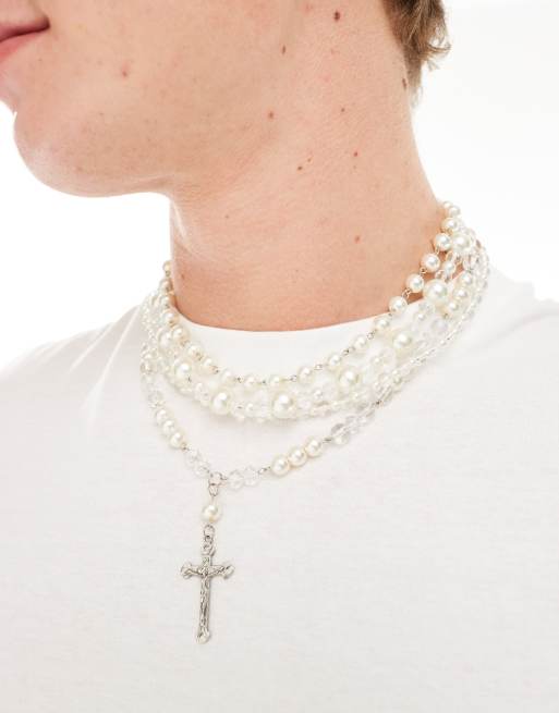 Pack de 4 collares de perlas con colgante de cruz de ASOS DESIGN