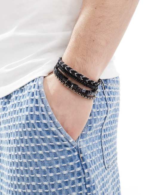 Pack de 4 pulseras negras para festivales de cadena y cuentas de ASOS DESIGN