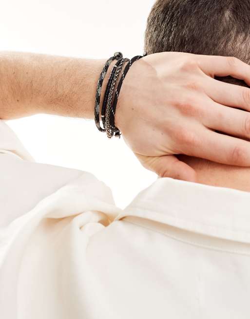 Pack de 4 pulseras negras para festivales de cordón de ASOS DESIGN