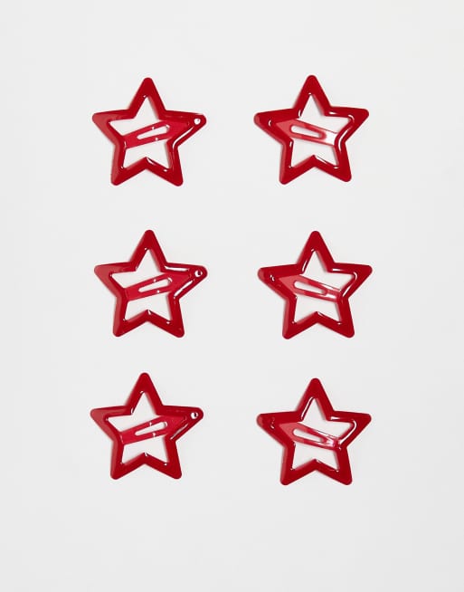 Pack de 6 pinzas para el cabello rojas en forma de estrella de ASOS DESIGN