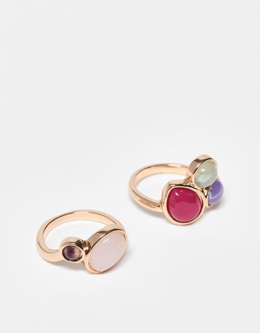 Pack de dos anillos dorados con diseño de racimo con cristales y piedras semipreciosas de ASOS DESIGN