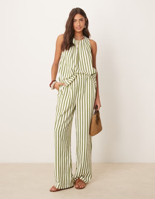 Pantalones a rayas caquis de pernera recta de sirsaca de ASOS DESIGN (parte de un conjunto)