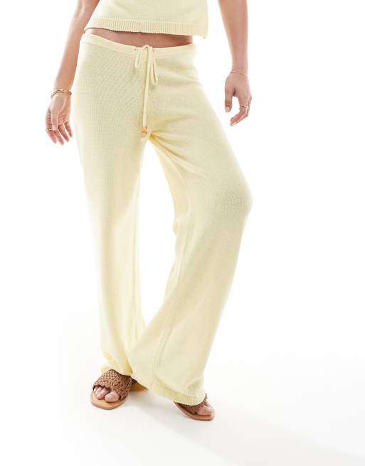 Pantalones amarillo pastel de talle bajo de punto con detalle de cuentas de ASOS DESIGN (parte de un conjunto)