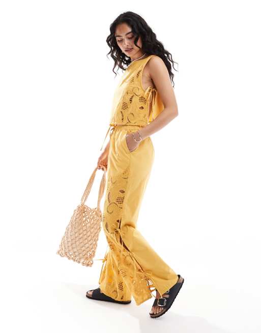 Pantalones amarillos con diseño calado y detalle de lazadas premium de ASOS DESIGN