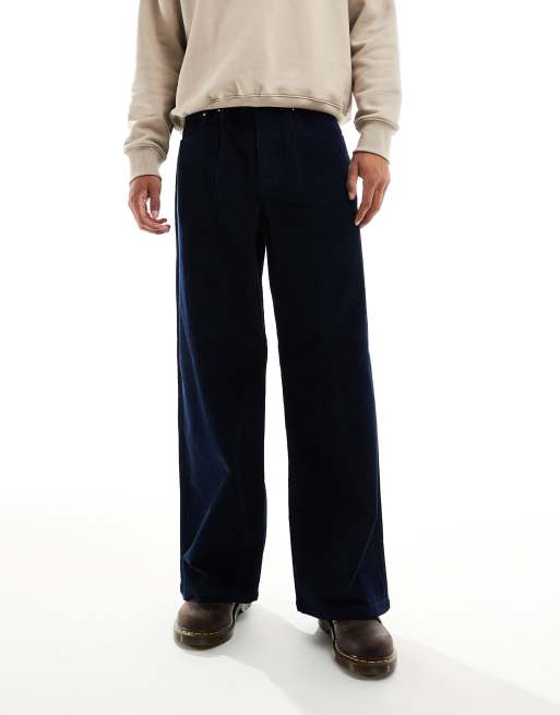 Pantalones azul marino de corte suelto de pana de ASOS DESIGN