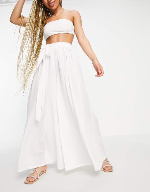 Pantalones blancos de playa de pernera ancha con cinturón de gasa de ASOS DESIGN