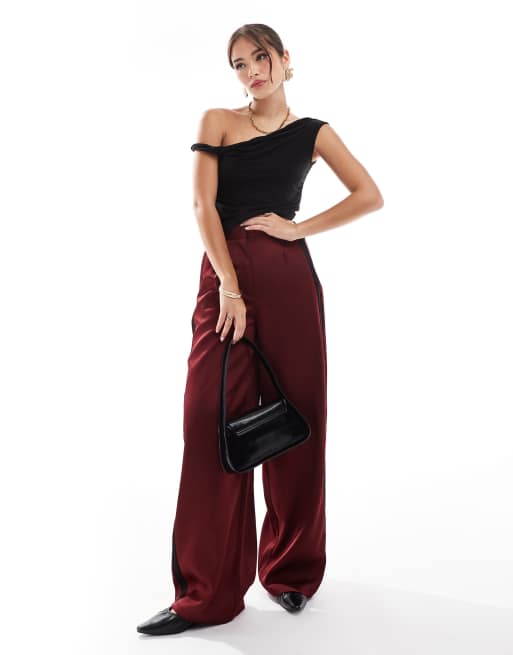 Pantalones burdeos con panel en contraste de satén de ASOS DESIGN