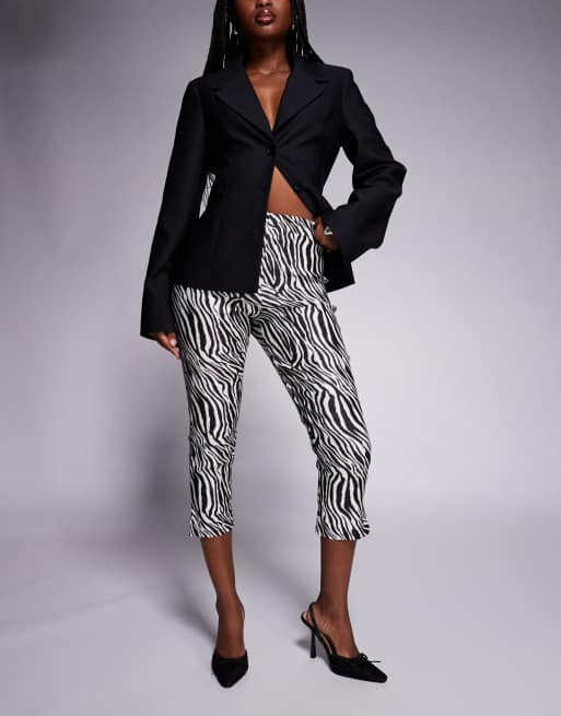 Pantalones capri de corte alargado con estampado de cebra y abertura en el bajo de bengalina de ASOS DESIGN