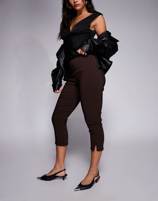 Pantalones capri marrón chocolate de corte alargado con abertura en el bajo de bengalina de ASOS DESIGN