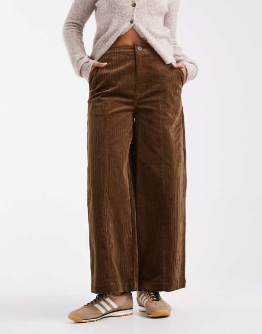 Pantalones capri marrón galleta de pernera ancha de pana de ASOS DESIGN