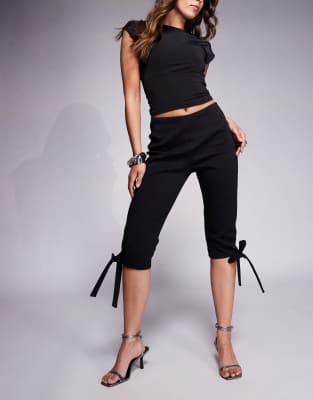 Pantalones capri negros con abertura lateral y detalle de lazo de punto roma de ASOS DESIGN