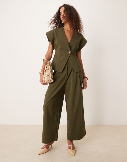 Pantalones capri verde oliva con detalle de trabilla regulable en la cintura de ASOS DESIGN (parte de un conjunto)