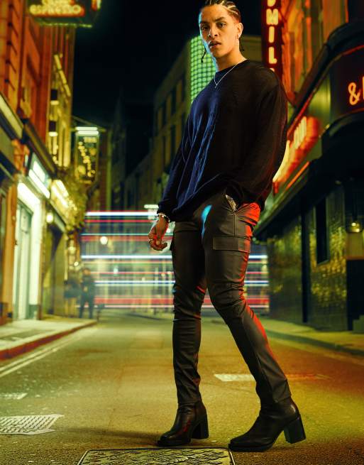 Pantalones cargo de corte superpitillo de tejido efecto cuero mate de ASOS DESIGN - BLACK