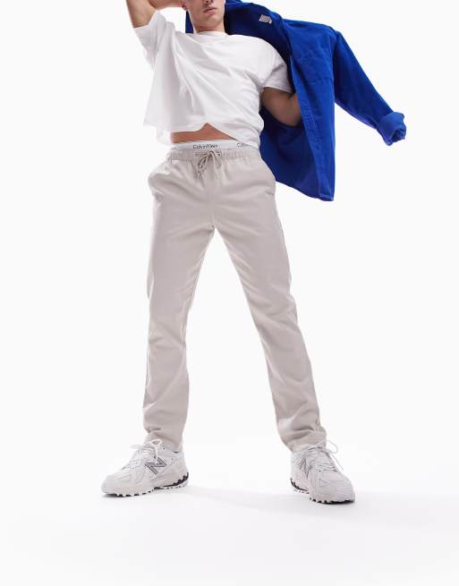 Pantalones chinos gris claro de corte slim con cinturilla elástica de ASOS DESIGN