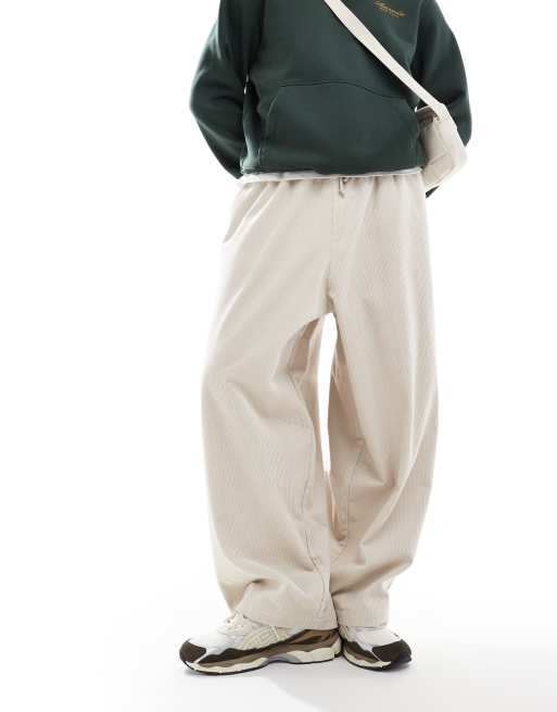 Pantalones color crema holgados de estilo paracaidista de pana de ASOS DESIGN