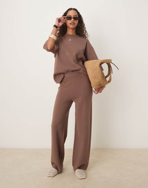 Pantalones color moca de punto estructurado de ASOS DESIGN (parte de un conjunto)