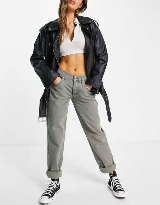 Pantalones con lavado gris de corte recto y talle bajo de estilo años 90 de ASOS DESIGN Hourglass