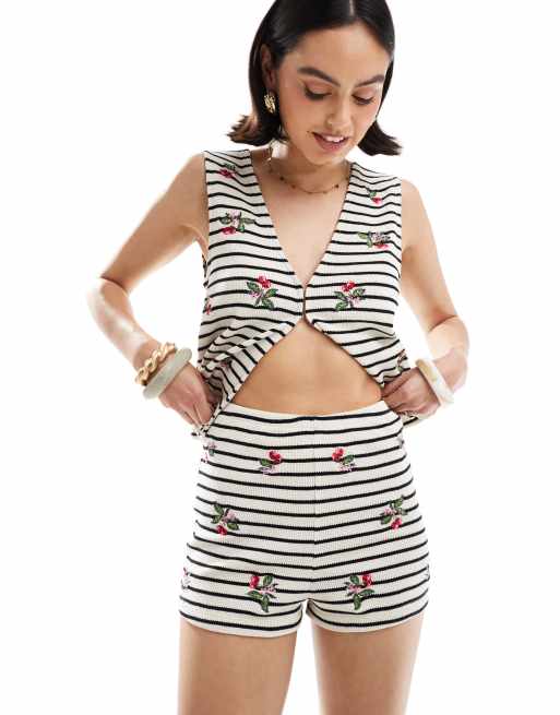 Pantalones cortos a rayas con bordado de cerezas de ASOS DESIGN