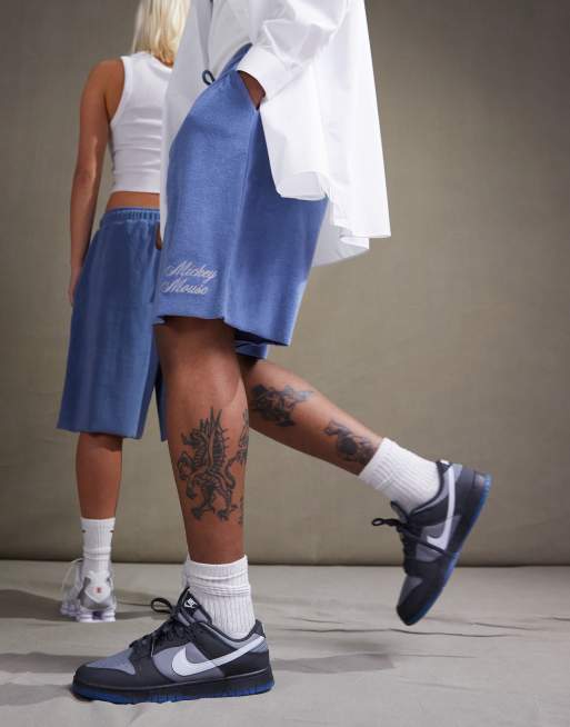 Pantalones cortos azul lavado unisex extragrandes con estampado de Mickey Mouse de Disney de tejido texturizado de ASOS DESIGN (parte de un conjunto)