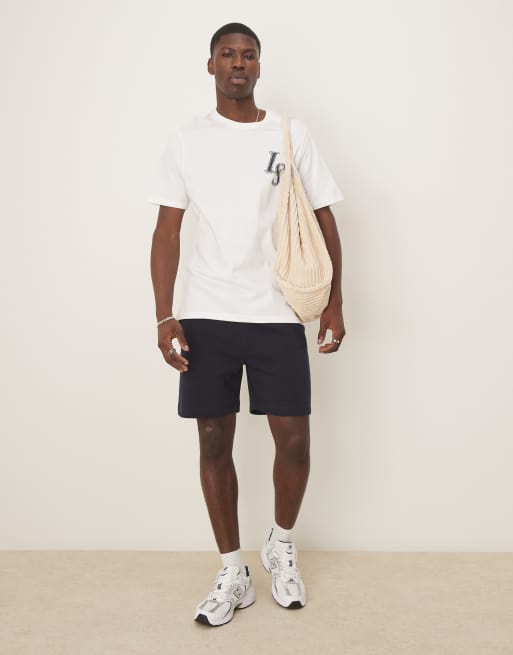 Pantalones cortos azul marino básicos de corte slim y largo medio de ASOS DESIGN