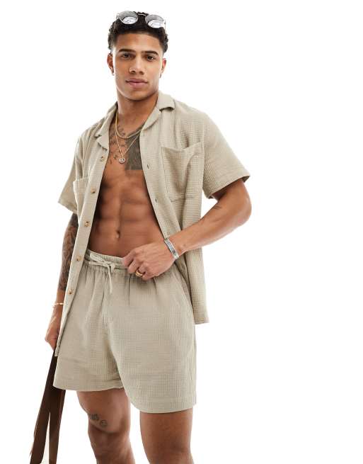 Pantalones cortos beis de tejido gofrado de ASOS DESIGN (parte de un conjunto)