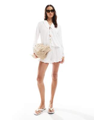 Pantalones cortos blancos con volante en el bajo de ASOS DESIGN (parte de un conjunto)