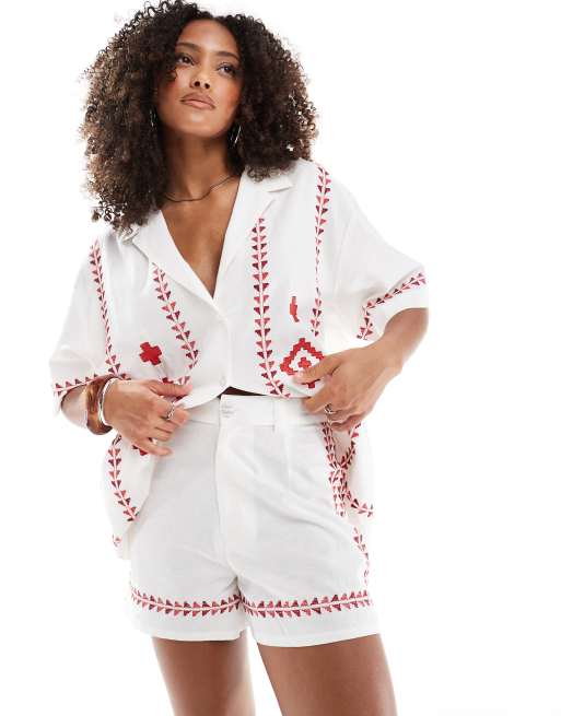 Pantalones cortos blancos y rojos con bordados de ASOS DESIGN (parte de un conjunto)
