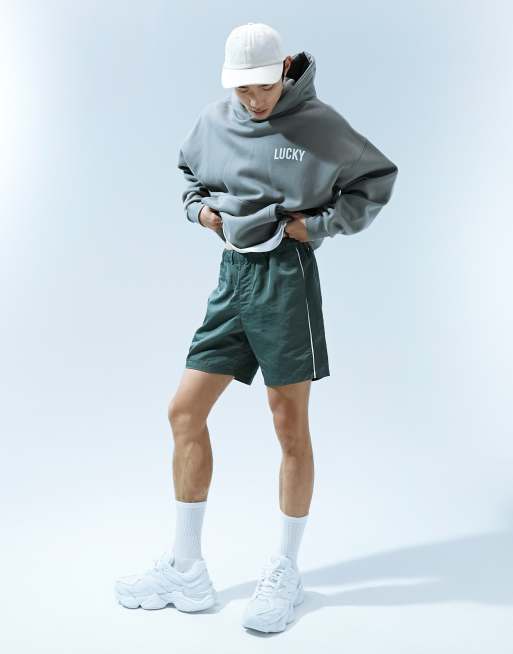 Pantalones cortos caquis de corte slim con detalle de ribetes de nailon de ASOS DESIGN
