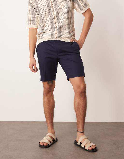 Pantalones cortos chinos de vestir azul marino de corte slim con trabilla en punta de ASOS DESIGN