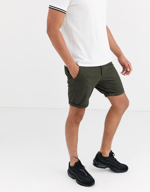 Pantalones cortos chinos pitillo en caqui oscuro de ASOS DESIGN
