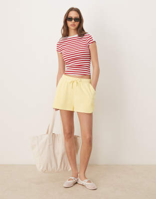 Pantalones cortos de chándal amarillo lavado de estilo deportivo de ASOS DESIGN